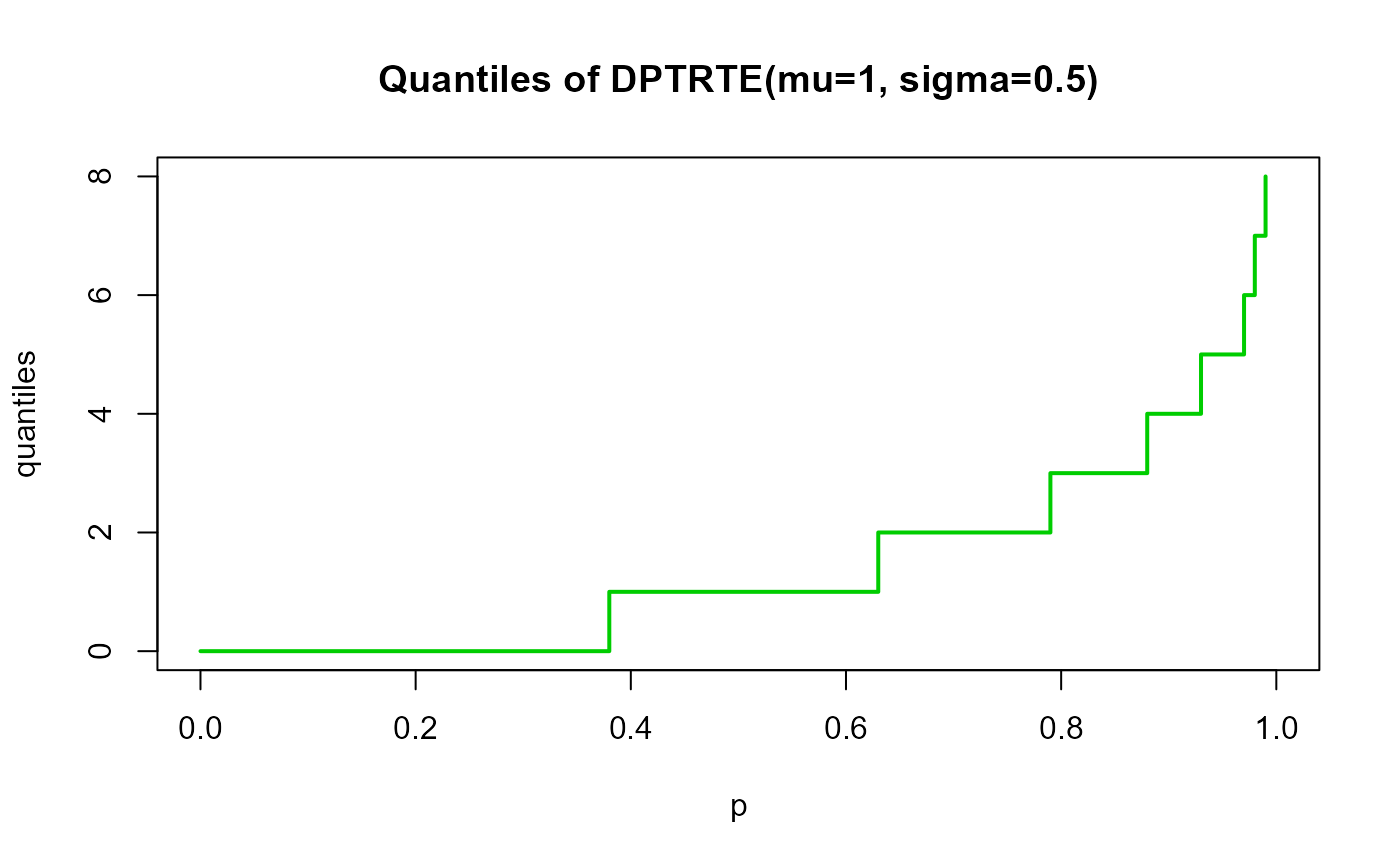 main="Quantiles of DPTRTE(mu=1, sigma=0.5)")