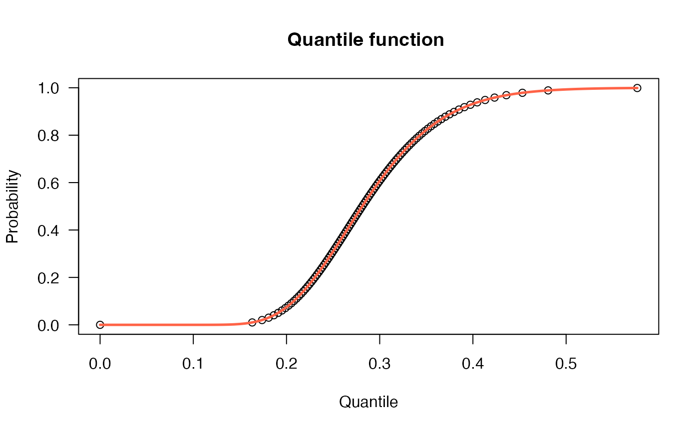 plot(x=qBS10(p, mu=0.75, sigma=5), y=p, xlab="Quantile",