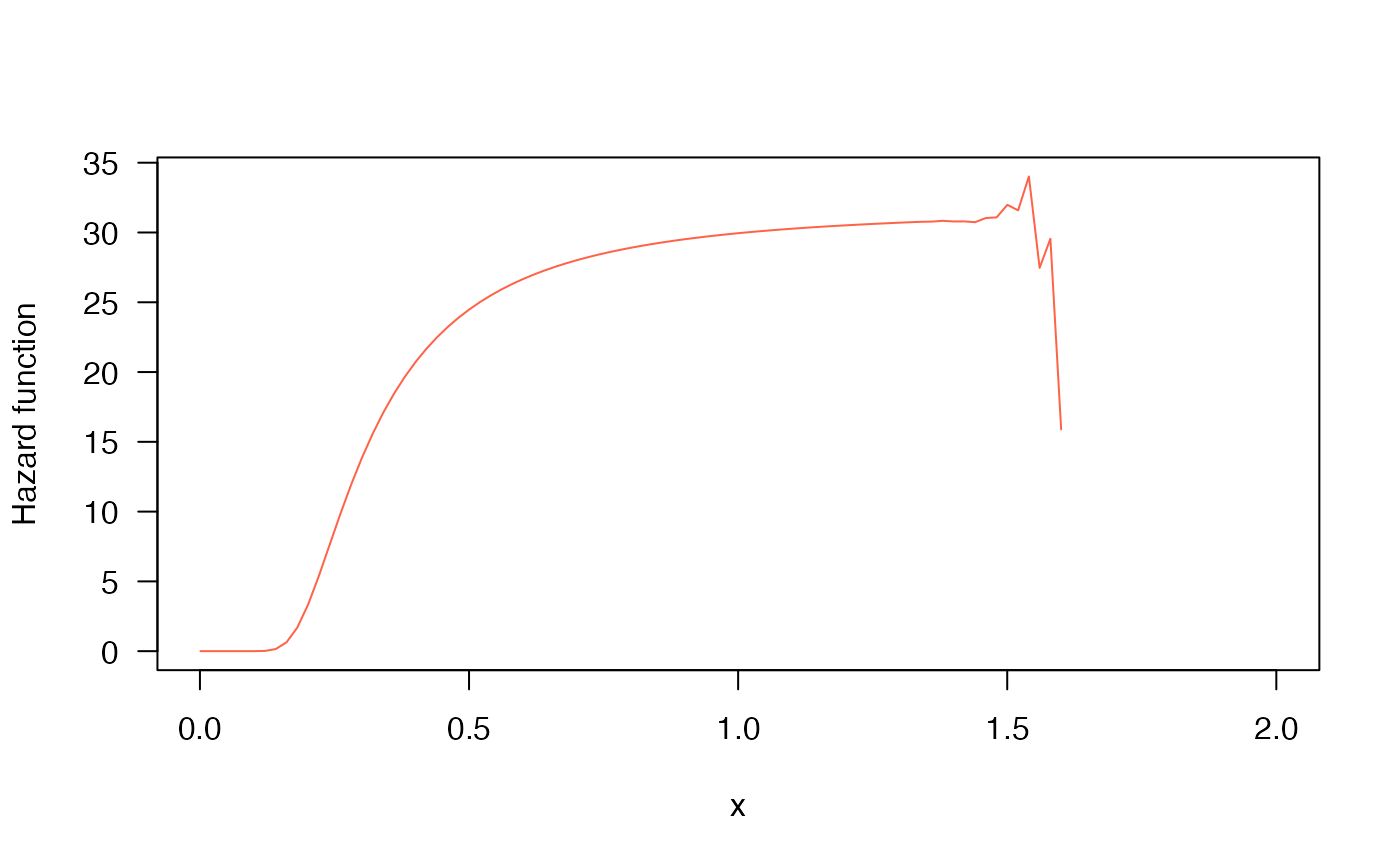 curve(hBS10(x, mu=0.75, sigma=5), from=0.001, to=2,