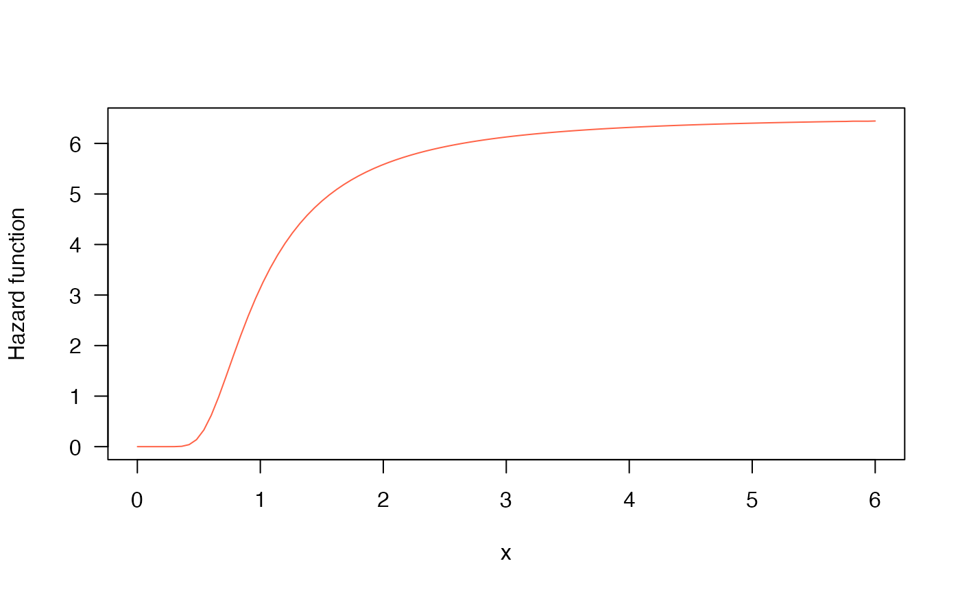 col="tomato", ylab="Hazard function", las=1)