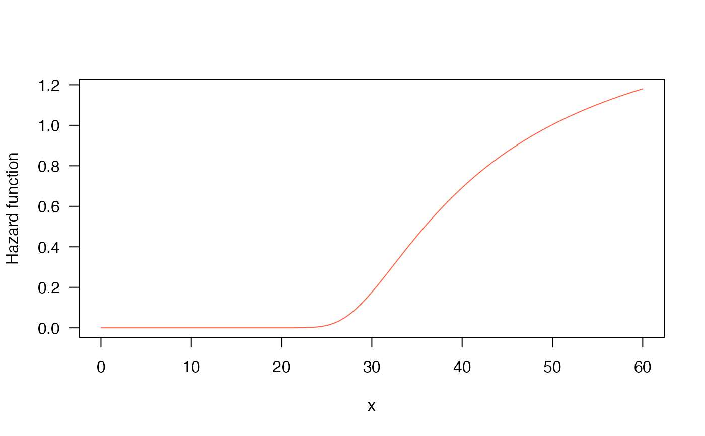 curve(hBS7(x, mu=0.1, sigma=10), from=0.001, to=60,