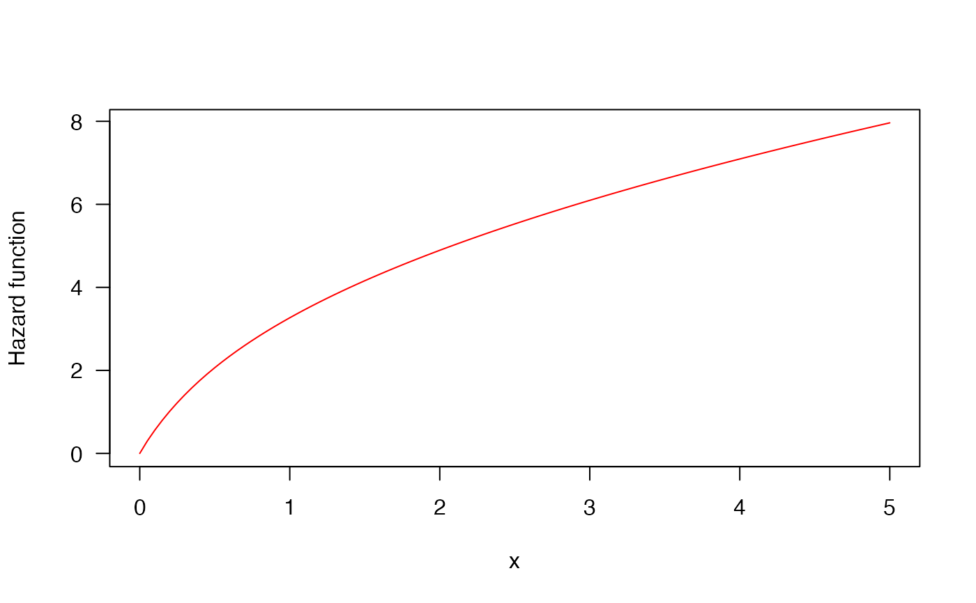 curve(hGammaW(x, mu=2.4, sigma=1.5, nu=1.3), from=0, to=5,