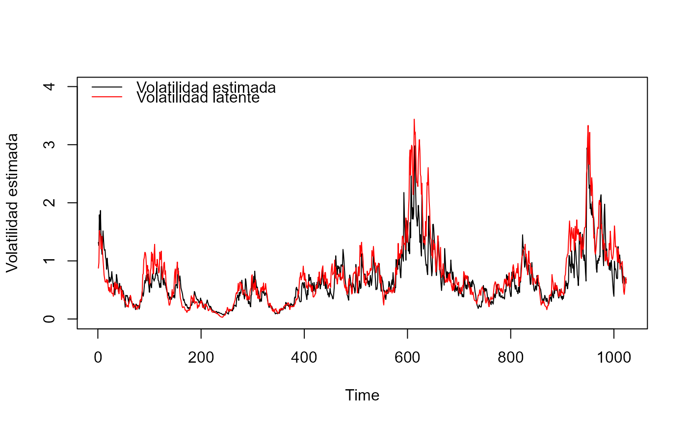 legend('topleft', legend = c('Volatilidad estimada', 'Volatilidad latente'),