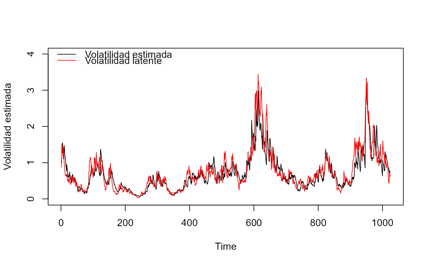 legend('topleft', legend = c('Volatilidad estimada', 'Volatilidad latente'),