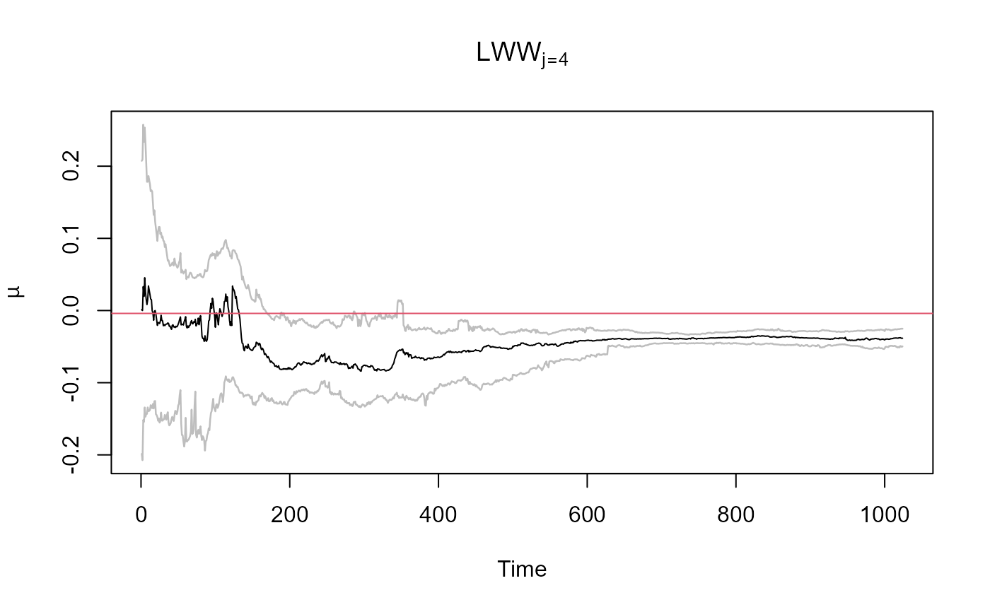 ts.plot(malpha2, ylim = range(lalpha2, ualpha2), main = expression(LWW[j==4]), ylab=expression(mu))